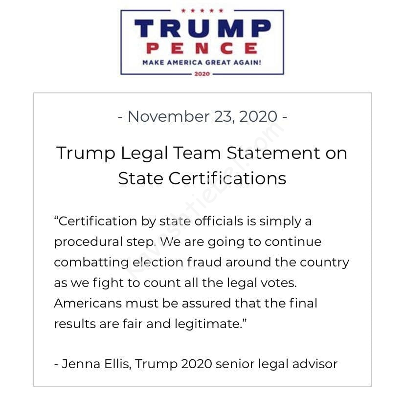 נאך וואס מישיגען האט אפציעל סערטעפייד אירע וואוטס היינט האט די טראמפ קאמפיין'ס לעגאלע טיעם ארויס געלייגט די פאלגענדע סטעיטמענט.