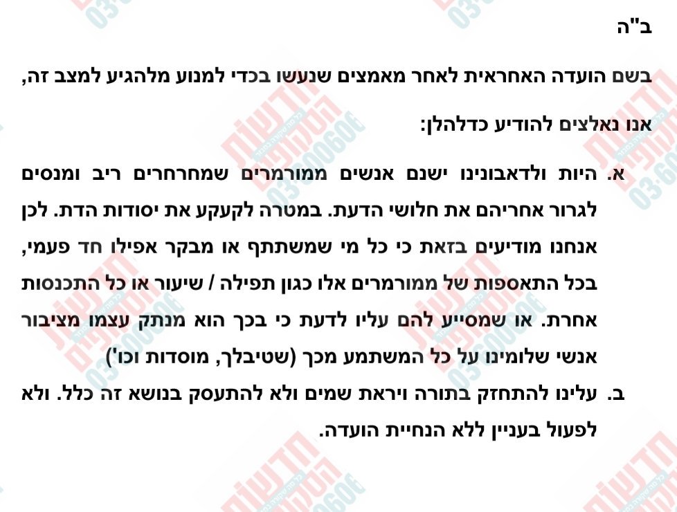 לפני כמה חודשים פרסמתי איגרת אש קודש בעניין זה לחברים מקשיבים, ויה"ר שכשם שזכינו לראות בהתחלת מפלת ממלכת הרשע כן נזכה לקיום הייעוד וּבְכֵן תֵּן כָּבוד ה' לְעַמֶּךָ תְּהִלָּה לִירֵאֶיךָ וְתִקְוָה טובָה לְדורְשֶׁיךָ וּפִתְחון פֶּה לַמְיַחֲלִים לָךְ. וּבְכֵן צַדִּיקִים יִרְאוּ וְיִשְׂמָחוּ וִישָׁרִים יַעֲלזוּ. וַחֲסִידִים בְּרִנָּה יָגִילוּ. וְעולָתָה תִּקְפָּץ פִּיהָ. וְכָל הָרִשְׁעָה כֻּלָּהּ כְּעָשָׁן תִּכְלֶה. כִּי תַעֲבִיר מֶמְשֶׁלֶת זָדון מִן הָאָרֶץ בב"א