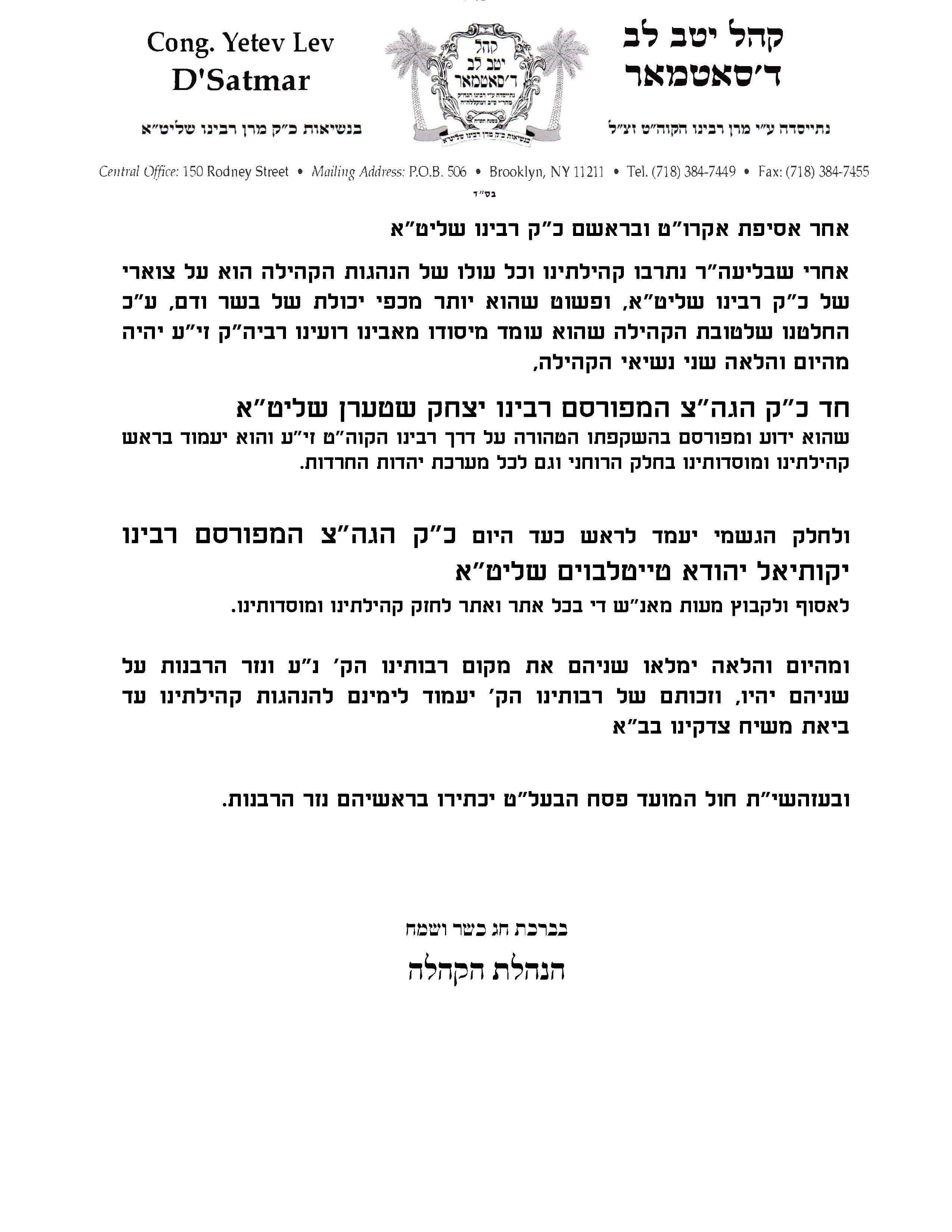 - אשכול: א פרישע מערכה פון סאטמאר קעגן בעלז