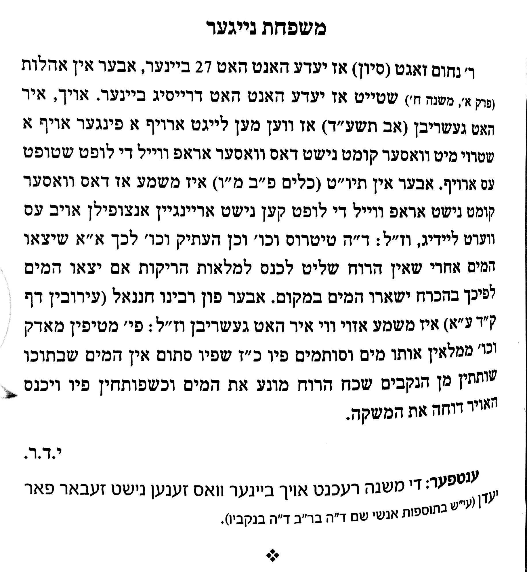 איחוד פעלד האט געשריבן:דער אינטרעסאנטע זאך איז, אז דער רמב"ם שרייבט קלאר אז ער נעמט וואס ער ווייסט פין די גוים, און כ'דענק נישט ווער עס זאגט עס, אז דער רמב"ם האט געמעגט, ווייל בעצם האבען די אידן געהאט דער חכמה און די גוים האבען עס געלערנט פין די אידן. נאר עס איז פארגעסען געווארען פין די אידען, און אלעס וואס די גוים ווייסען קומט פין די אידען, און דער רמב"ם האט נאר צוריק גענומען דער חכמה פין די גוים. גיי פארשטיי. בעצם האט דער חפץ חיים געוויסט וויאזוי צו מאכען עלעקטריק פין וואסער. און דער חזון איש צו מאכען אפעראציעס.