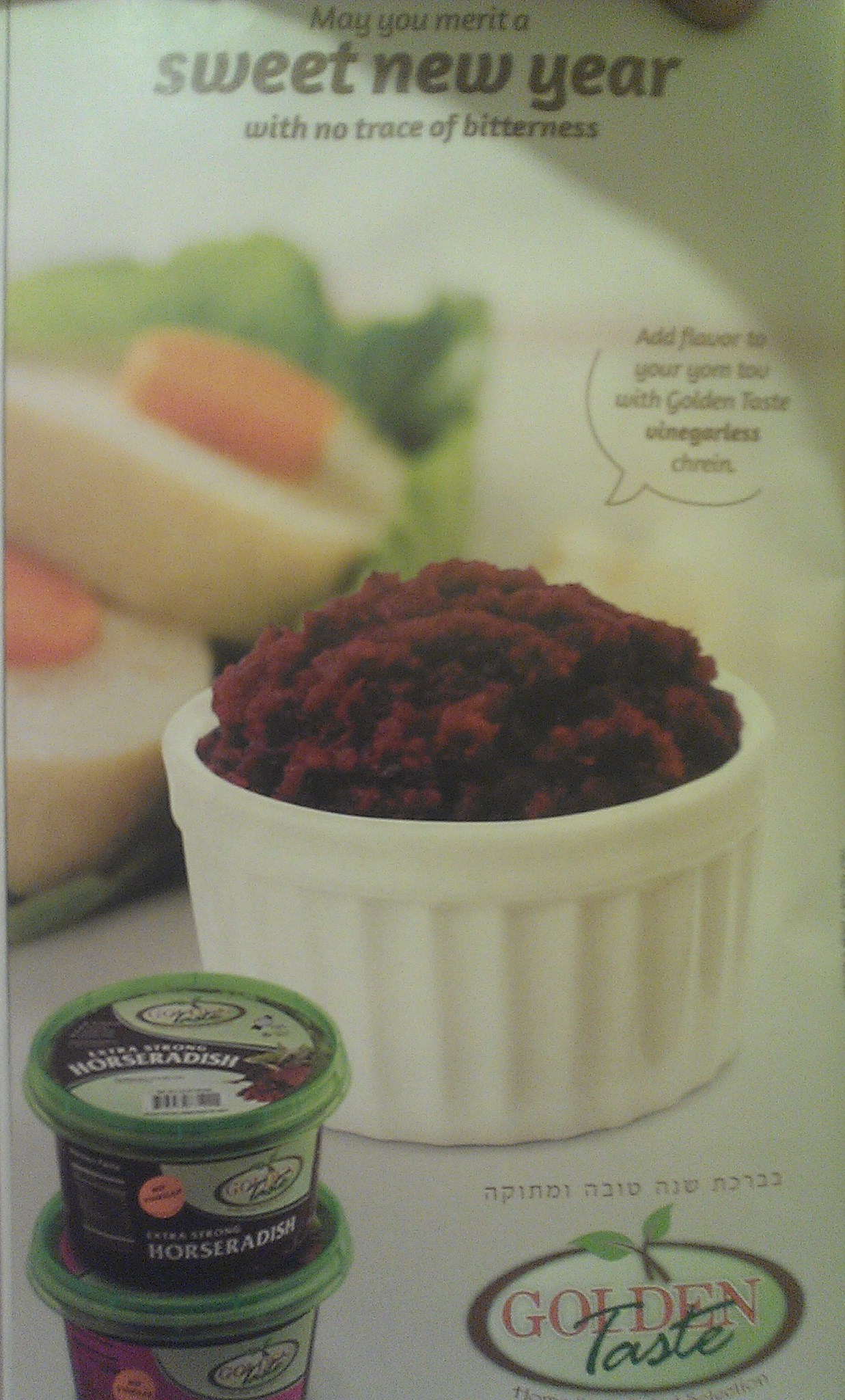 געוואלדיג: אנטשולדיג פאר צושטערן דיין שמחה. אבער דער עד וועלכן דו ברענגסט אראפ איז פון די גאלדען טעיסט קא. וואס איז א אידישע קאמפעני. אפשר נישט קיין שומרי שבת, אבער נישט קיין גויים. זיי אדווערטייזן אויך ..."האורסרעדיש"/ כריין נעבן די געפילטע פיש. אפשר, ביי ביאת משיח צדקנו וועללן די גויים אויכעט עסן געפילטע פיש מיט כריין. אבער דערווייל ווילאנג אונז זעמיר אין דעם ביטערן גלות, עסן נאר אידן. אפילו אמעריקאניזירטע אידן געפילטע פיש מיט כריין. און אזוי ארום סעלעברעיטן זיי די נייע יאר. מ'קען נאכדעם גיין אין די מאלל שאפינג אדער אויפמאכן די טעלעוויזיע פאר די לעצטע נייעס. אבער זיי זענען דאך וואוילע אידן...!