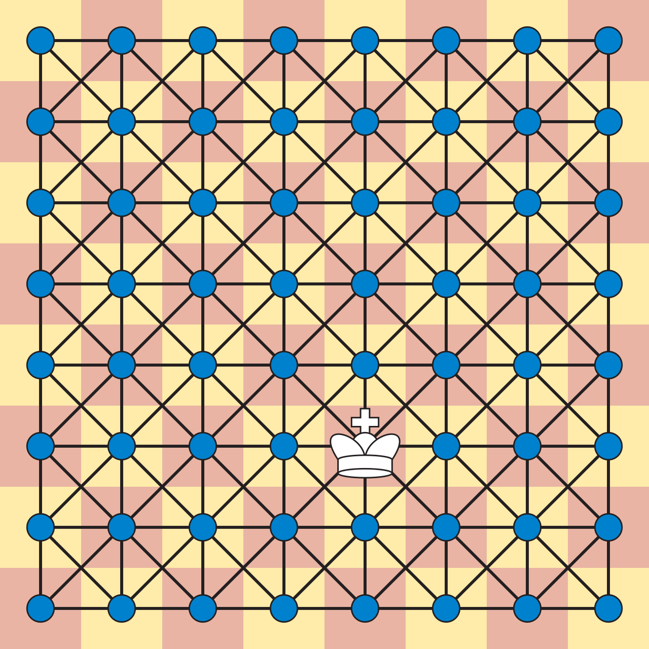 למשל, א קעניג׳ס גרעף, והיינו א גרעף וואס רעפּרעזענטירט אלע מעגליכע וועגן א קעניג אויפ׳ן שאך-ברעט קען זיך רוקן כזה: