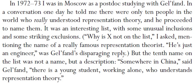 ער ברענגט ארויס אז אויפקומען מיט חידושים במאטעמאטיקס ארבעט בעסער ווען מ'ארבעט אליין ווי איידער בחברותא. גייט דאס שוין ווייטער צוזאמען מיט טעאלאגיע אין דעם געביט אז פשטות איז בעסער ווי ריבוי.