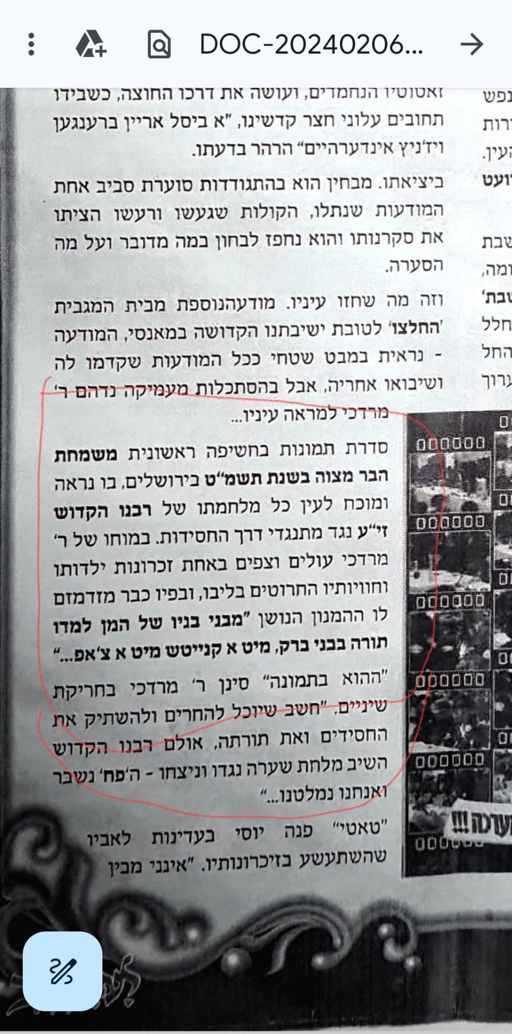 אדונינו האט געשריבן: ↑פרייטאג פעברואר 02, 2024 12:44 pm דער מענדעלע שליט״א האט אלע יארן געשטיצט טעראר, (ער זאגט עס אפן) ביים ישועות משה (זיין טאטע, נישט אויסמישן מיט דער פון די שיטה) פלעגט ער הייסן שיקן שיריים ביים טיש פאר ווער עס האט אויסגעפירט טעראר, די טאטע פלעגט ער איינרעדן אז זיי האבן זיך פארהערט בלעטער גמרא.