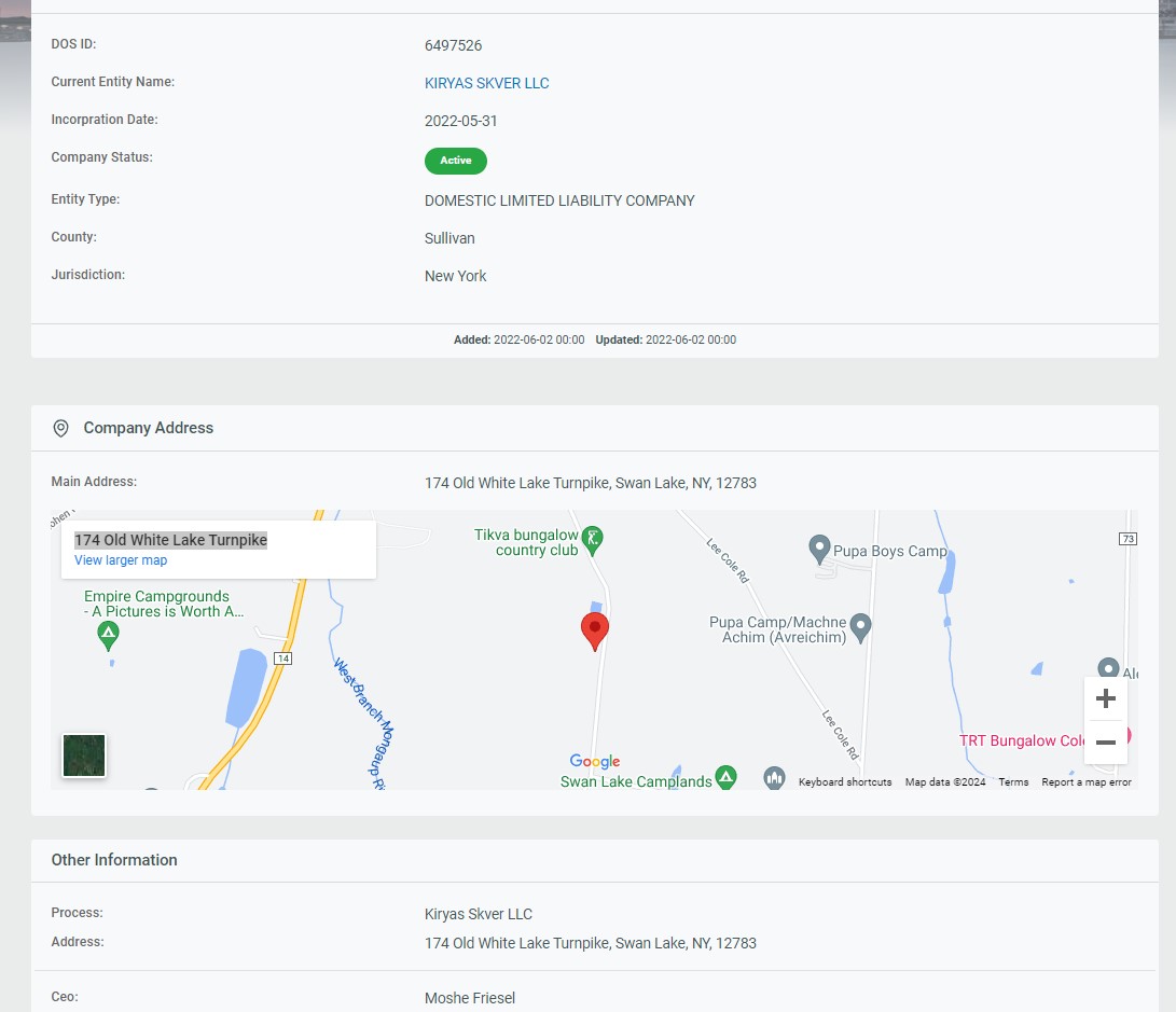 זיי שרייבן אין זייער בראשור אז ס'איז לאקירט אביסל ארויפציר פון דעם היימישן ישוב אין מאנטיסעלאו. אין פאקט איז עס א גוטע 15 מינוט צו דרייווען ביז מאנטיסעלאו (אן טרעפיק)