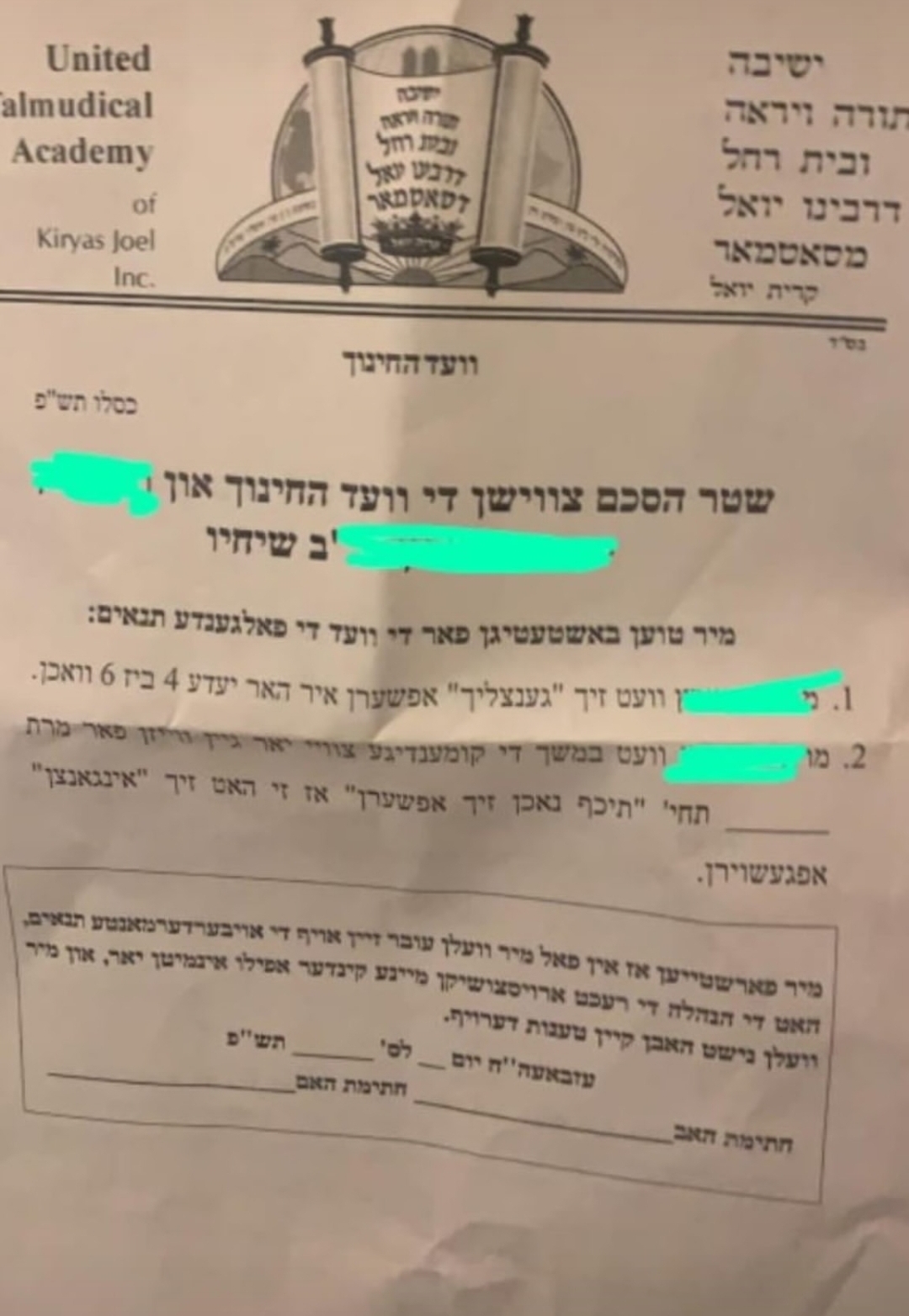 דער מיידל פון פלעטבוש האט ארויסגעלייגט אזא מעסעדזש נאכפאלגנדיג מיט א בילד פון א ספעציעלע צעטל וואס א פרוי דארף צו טויספילן צו קענען האלטן די קינדער טין די מוסדות אין קרית יואל.