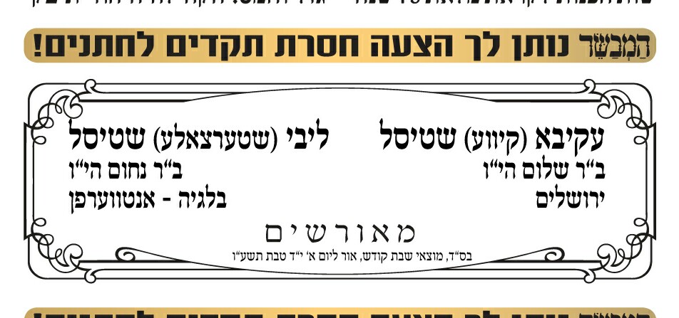 משבק האט געשריבן:שוין האסט מיר אויסגעכאפט . איך האלט אז מקען ערווארטן א סורפרייז צוואה וואס זאל פארלאנגען אז קיווע זאל חתונה האבן מיט ליבי . און באקומען די דירה . ..