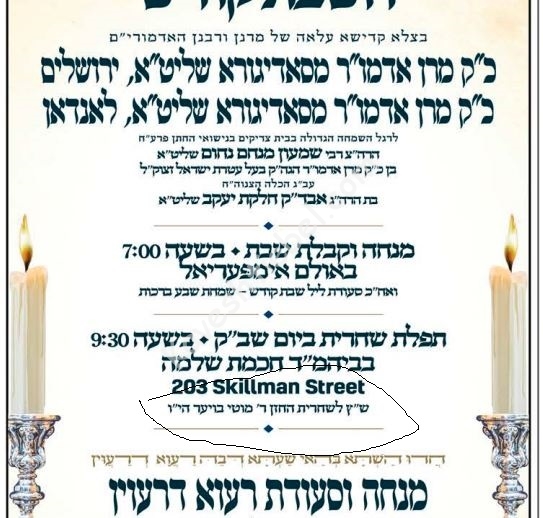זאג 1 שוהל פין מהר''א וואס איז געווען פארמאכט שמח''ת אדער שבועות, אפילו 1 שוהלייעעקקבב האט געשריבן:אז די לייקענסט פאקטן און די מאכסט פאקטןsignout האט געשריבן:שקר, קיין איין ביהמד''ר פין מהר''א איז נישט געווען אין נישט היינט פארמאכט, אז די רעדסט יא פין פארמאכען מהרז''ל האט פראבירט 1 יאר צו פארמאכען די בתי מדרשים בשעת די הקפות, ס'האט אפילו געהאט צעטליך דערוועגן, אבער דעם ציבור האט געפיפען כדרכם,ייעעקקבב האט געשריבן:איך כאפ נישט וואס די ווילסט דאsignout האט געשריבן:דער דיין ר' יח''מ פרידמאן ז"ל האט געהאט געעפנט א שוהל אויף ראס סט. ווי ער פלעגט פראווען יעדע שבת ויו''ט אויף א גרויסע פארנעם, דער דיין רמ''מ טירנויער ז"ל האט געעפנט א שוהל תורת משה און פלעגט קומען צו פארן יעדע יום טוב קיין וומסב''ג און ארויסדינגען די אימפעריעל זאל (נאכדעם וואס מהרז''ל האט אים נישט געוואלט פארדינגען קיין זאלן), רש''ל וויינבערגער פראוועט אין פאיע ווי ער דינט אלס רב, די אנדערע דיינים פראווען אין די לאקאל בתי מדרשים ווי זיי דינען אלס דיין, א שטייגער ווי רח''ק גוטמאן וואס פראוועט לאנגע הקפות אין סאוט אכט, און אלע פראווען עס אפצושטעלן האט נישט מצליח געווען, סוי יעצט איז געקומען די רייע אויף מהרז''ל פילאף, וועלכע האט לעצטנס געעפנט די נייע שוהל מכלל יופי.