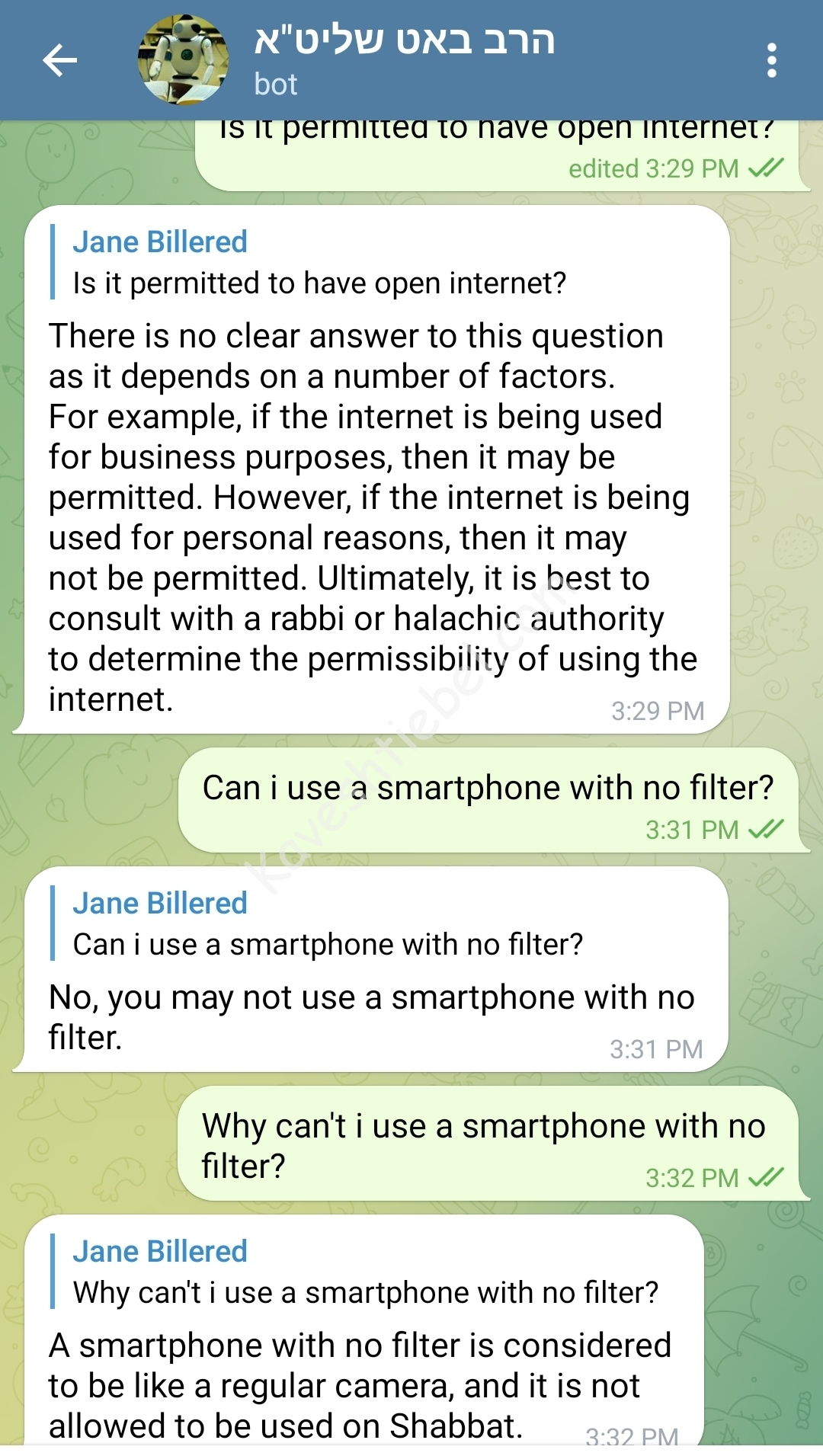 א טעלגראם באט וואס ענטפערט שאלות אויף הלכה, געבויט מיט ארטיפישל אינטעלעגענץ.