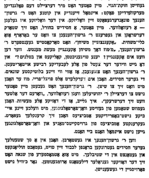 עס זעט אויס אז די ביזט זייער אינג ...בורו פארק האט געשריבן:אנטשולדוגס, רוב פון זיי איז געווען ווייל זיי האבען זיך געשלאגען אויף א בית מדרש און ס'איז נישט געווען אפעציעלע הכרזה אז מ'זאל אזוי טון.Chasidishmashpia האט געשריבן:די בילדער פון די פראגראם וואס גערער חסידים פירן אויס די טעג לכבודו פון רבן הקדוש שליט"א ברענגט צוריק די זיכרון פון רציחות און קלעפ ביי כלל ישראל פון יארן צוריק. און ניין איך מיין נישט ביי די צווייטע וועלט מלחמה איך מיין דייקא ווען פרומע אידן די 'עם הנבחר' האבן זיך געהרגט צווישן זיך און איך גיי נישט רעדן פון צאנז און ריזין ווייל דאס מוז מען שוין היינט זאגן עס איז געווען לשם שמים, איך רעד פון די הריגות פון אנדערע קהילות ווי למשל אין סאטמאר ווען מען איז איבערגעפארן מיט א קאר יוסל וואלדמאן, ווען מהאט זיך געהרגט שמחת תורה אין ראדני, ווען מהאט געברענגט הונט און בית מדרש אין לונדון, אין סקווירא ווען מהאט שיעור נישט פארברענט איינער וואס האט נישט מודה געווען אין רבי שליט"א, אין בעלזא ווען מהאט מבזה געווען אין מזיק געווען א ספר תורה ביי הכנסת ספר תורה לקהילת מאחניווקא למען כבוד בית בעלזא, אין וויזניץ ווען מהאט אראפ געווארפן רבי ישראל די טרעפ אלס לכבודו של הישועות משה, אין באבוב ווען מהאט מבזה געווען ת"ח אלס פארן האבן די חוצפה צו גיין אביסל אויך צום נעפיו, די הריגות אין פונוביז צווישן די מחבלים און שונאים מתוך בזוי כבוד התורה ולומדיה, די מערכות אין אלע חרדישע געגענטער אקעגן די וואס זענען מתקן עירובין כתקנת שלמה המלך ועל כולם די פינסטערע מערכות וואס מיר פירען קעגן איינער וואס פארלאזט די אידישקייט וואס מיר האבן זיך פארגעשריבן