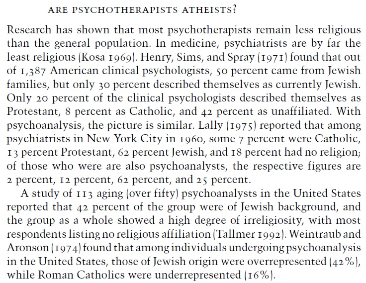 דאס איז טראץ וואס ער טענה'ט אז פסיכאלאגיע האט יא אין קאממען מיט די איסטערן רעליגעס לפחות אין זייערע מטרות- ביידע זוכן צו טוישן די סטעיט אוו קאנסשעסנעס פונעם מענטש.