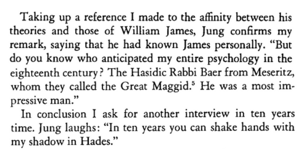 אן אינטערסאנטע סטעיטמענט פון קארל יונג איבער דער מגיד פון מעזריטש. (פון א אינטערוויו לכבוד זיין 80'טע געבורטסטאג)