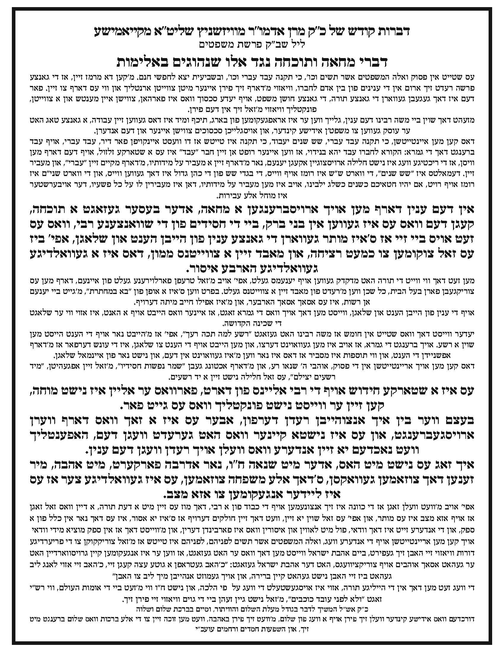 שארפע מחאה די וואך דורך האדמו"ר מוויזשניץ שליט"א קעגן די שוואנצאנעס רבי אין געזאגט אז ער איז די ערשטע ער האפט אנדערע וועלן נאכטון פארשטייט נישט וואסע פשט אז די וועלט איז שטיל ווען מען טוט אזעלכע זאכן ער האט מלמד זכות געווען אז די שוואנצאנעס רבי (ווי ער האט אים גערופן ביי די תורה)ווייסט זיכער נישט וואס מען טוט ע"כ א חלק פון די דברות קודש
