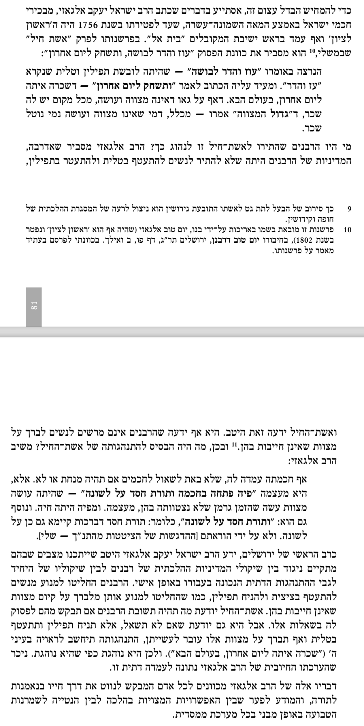 עס איז אויך מן הראוי לציין צו וואס הרב דר. זוהר ברענגט צו פונעם מהרי״ט אלגאזי בשם אביו הרב ישראל יעקב אלגאזי, לגבי נשים המניחות תפילין און איבער פרעגן מקודם א שאלת הלכה מרב וחכם בזה: